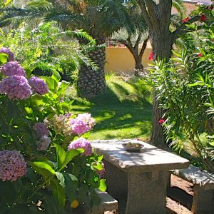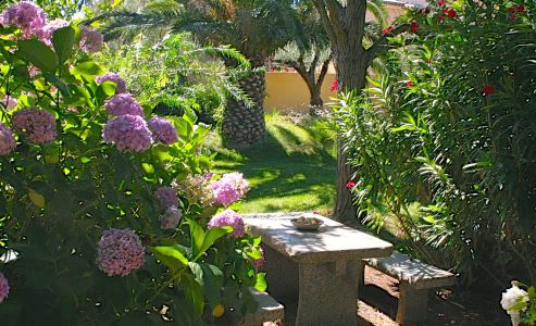 Le jardin d'une superficie de 1500m² est un oasis ombragée en plein centre de Calvi.