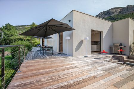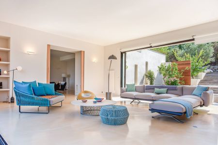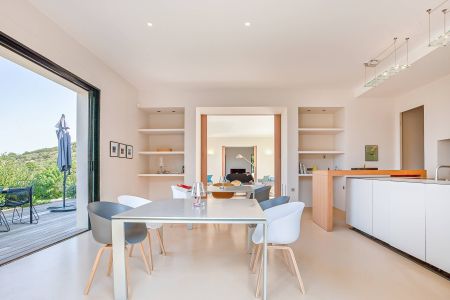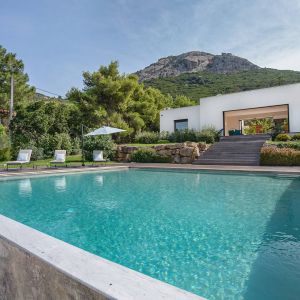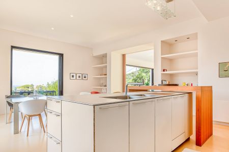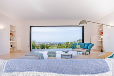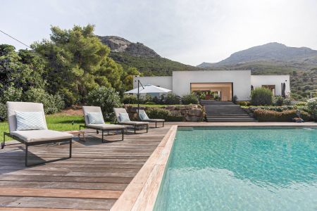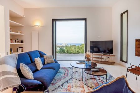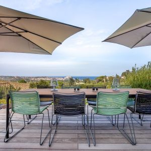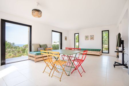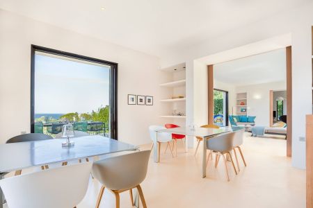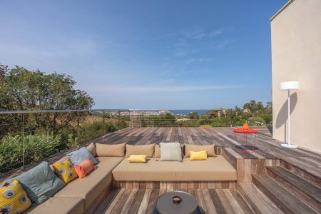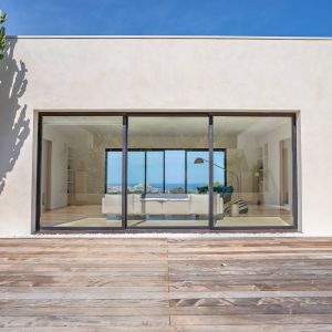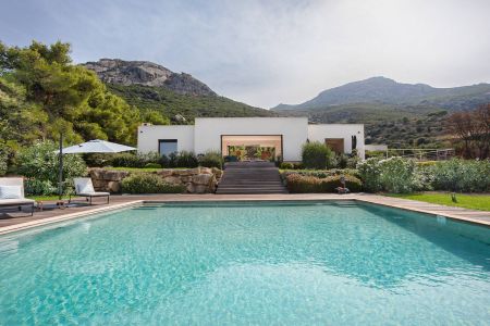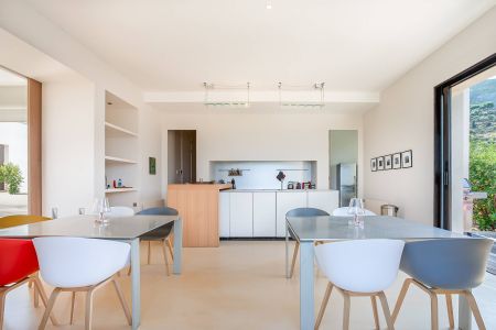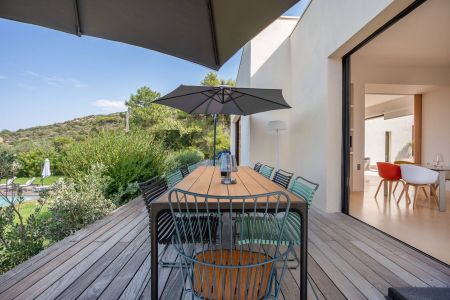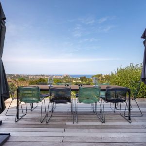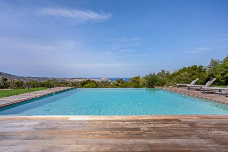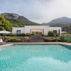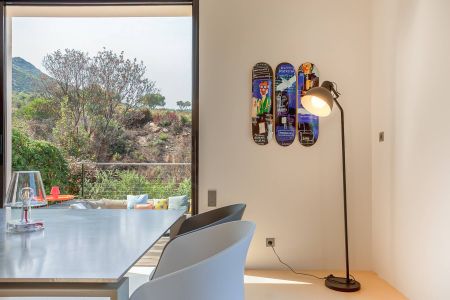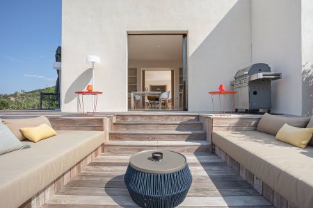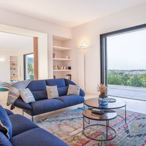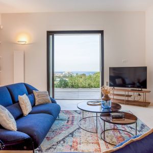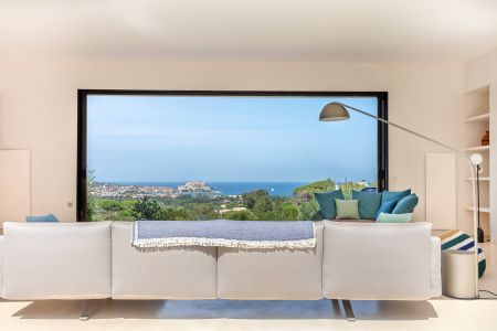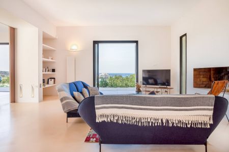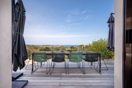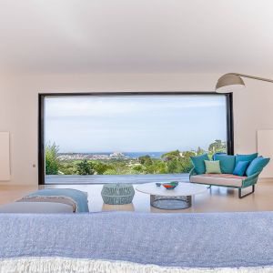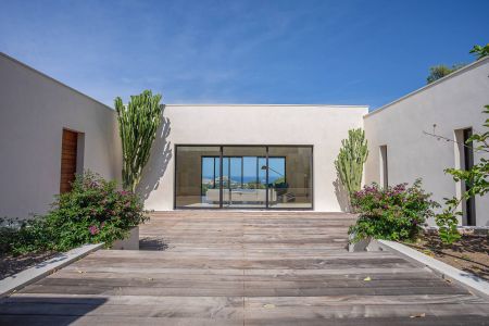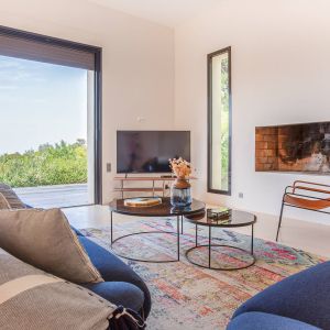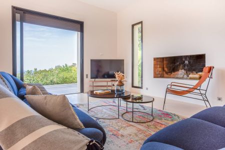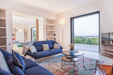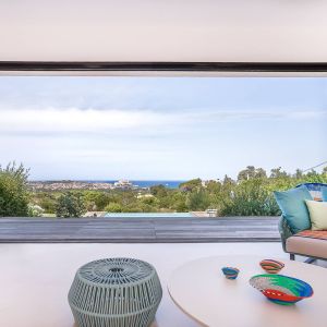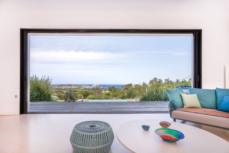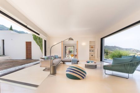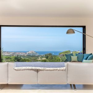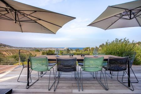 Une villa contemporaine, avec des vues spectaculaires sur la baie, les montagnes et la mer. Climatisation dans toutes les chambres.