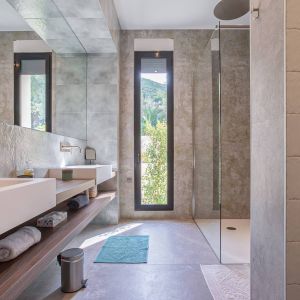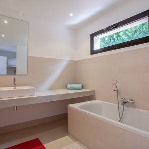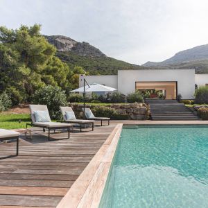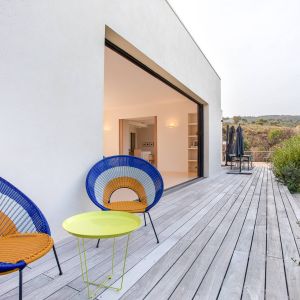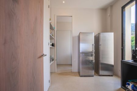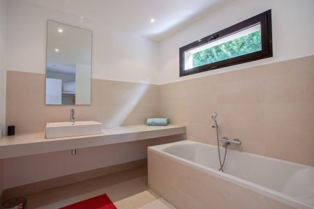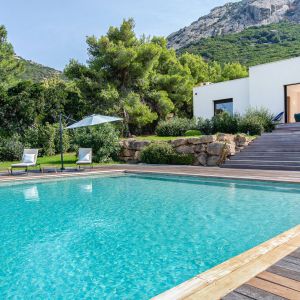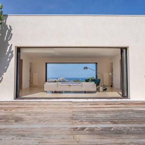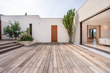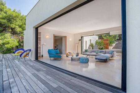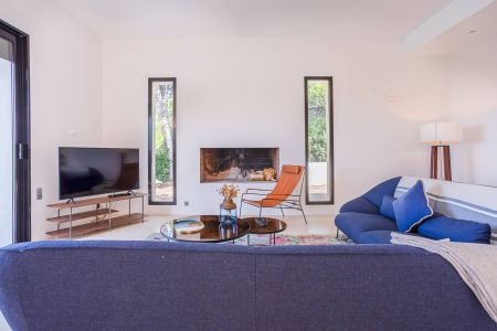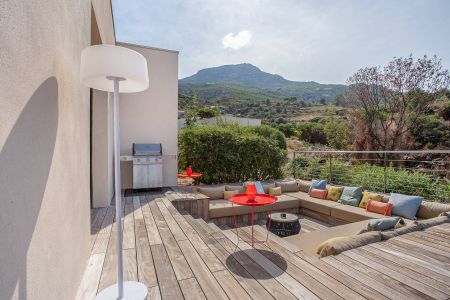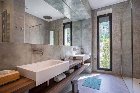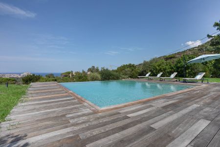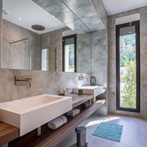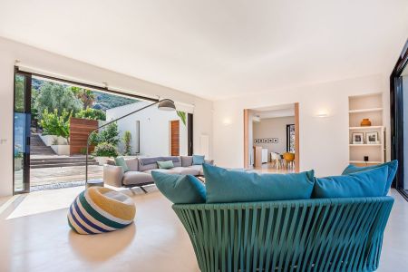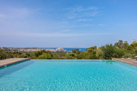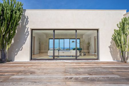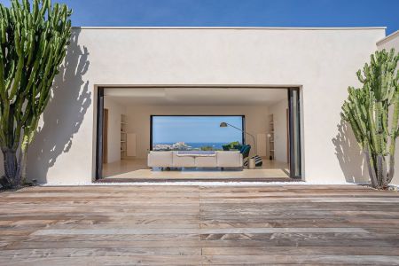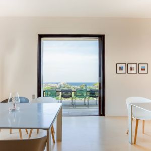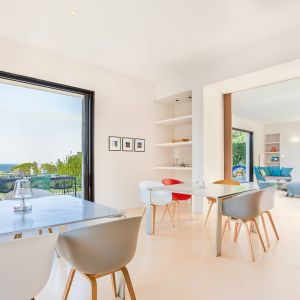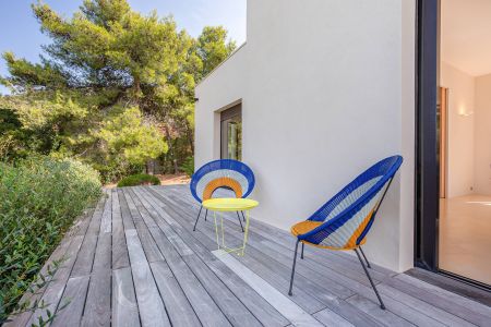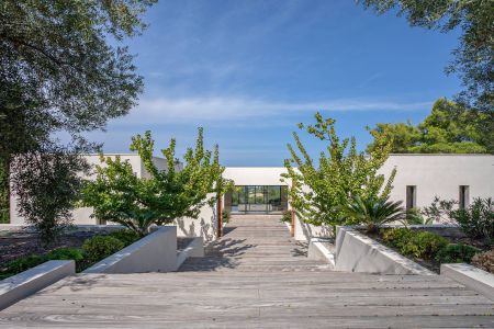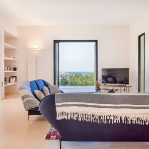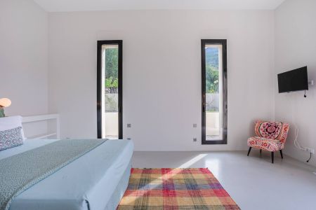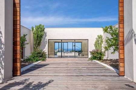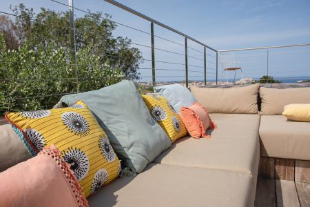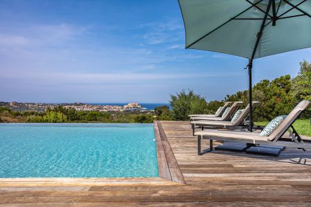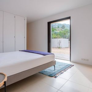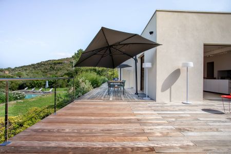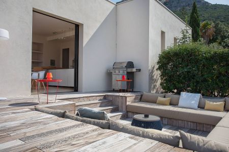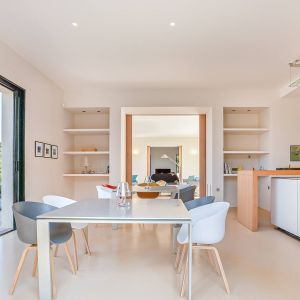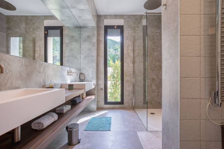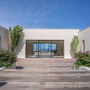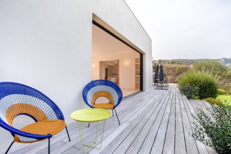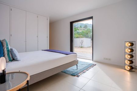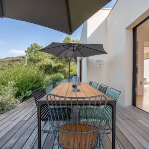 Une villa contemporaine, avec des vues spectaculaires sur la baie, les montagnes et la mer. Climatisation dans toutes les chambres.