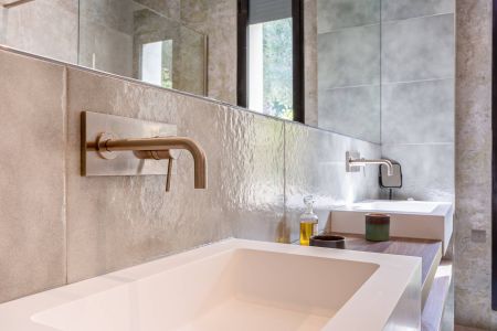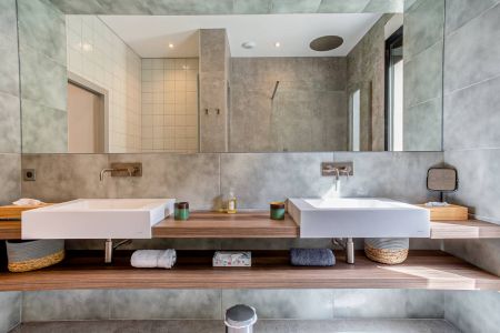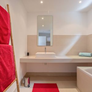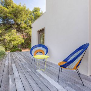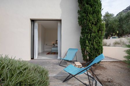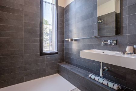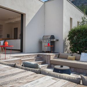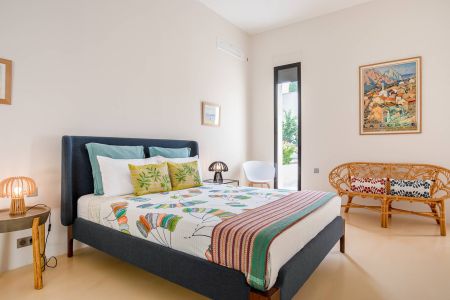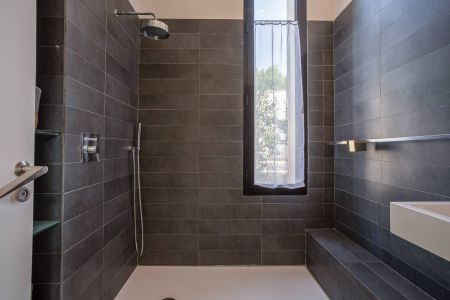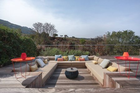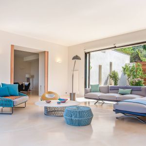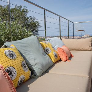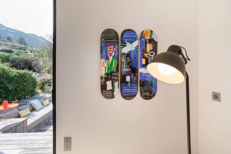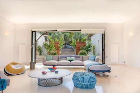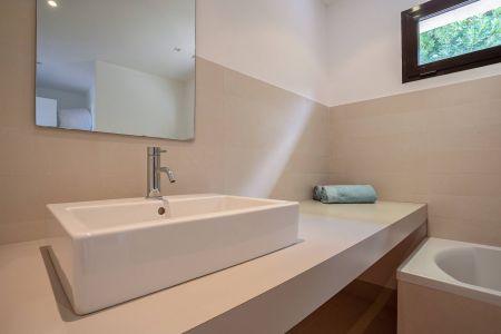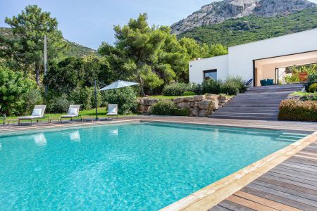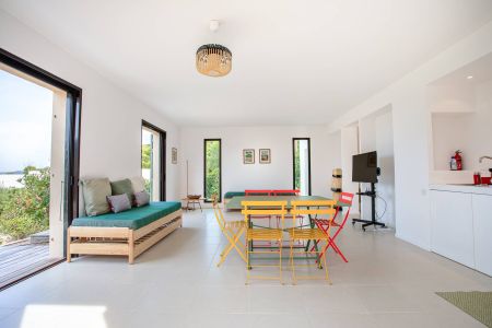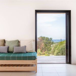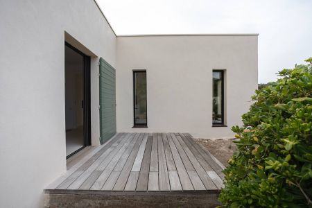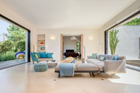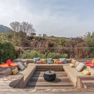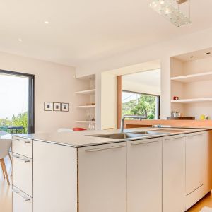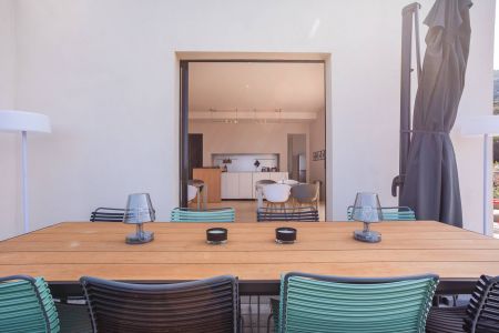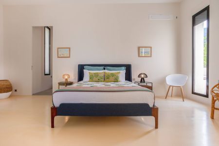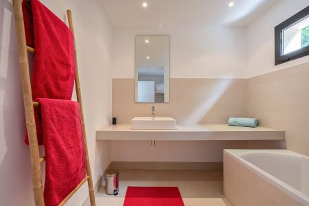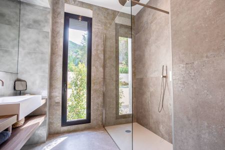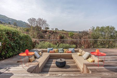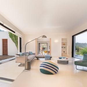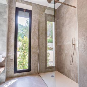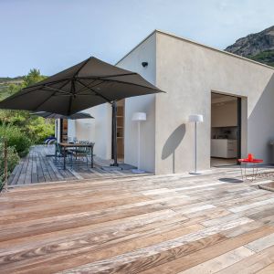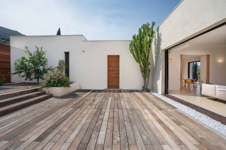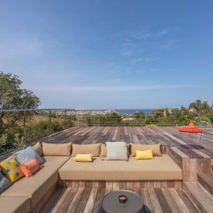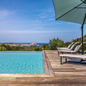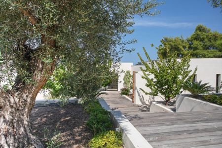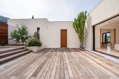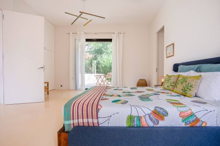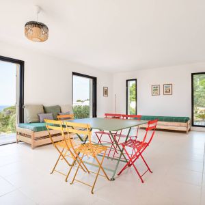 Une villa contemporaine, avec des vues spectaculaires sur la baie, les montagnes et la mer. Climatisation dans toutes les chambres.