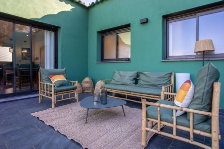Dotée d'une tres belle terrasse avec barbecue qui donne sur une piscine ( 7 x 3 m) , la villa vous offrira les vacances ideales en famille ou entre amis dans un environement calme et paisible tout en ayant la possibilité d'accéder à la plage et aux différents commerces en quelques minutes à pied ;