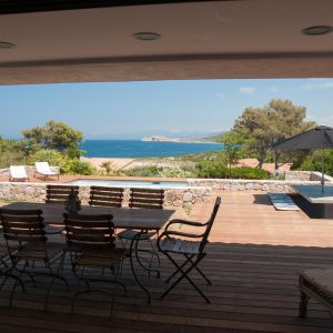 Villa de standing et confort les pieds dans l'eau. En effet la villa qui vient d'être entièrement rénovée, se situe au cœur de la Marine de Davia à 200m de la plage de sable, facilement accessible à pied.
