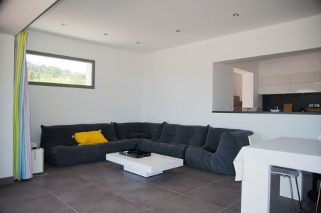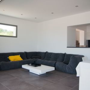 Le salon meublé possède et est équipée en TV et Hi-Fi incorporé et s'ouvre sur une terrasse avec vue mer et son barbecue.