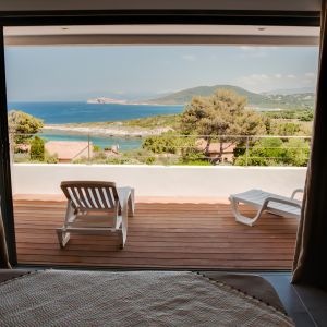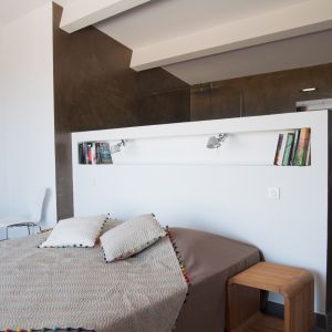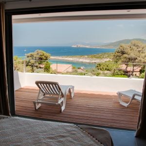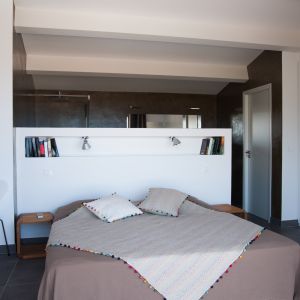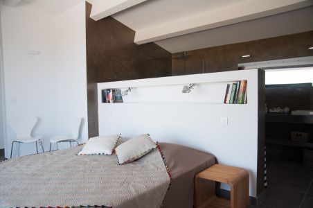 Au premier étage la chambre de maitre possède sa salle d'eau et WC ainsi qu'une terrasse privée avec vue mer.