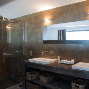 La villa de 150m² de surface habitable se compose de 4 chambres climatisées avec chacune sa salle d'eau. Conçues pour accueillir 8 à 10 personnes, la villa comporte 3 chambres personnalisées avec lits doubles et 1 avec 2 lits superposes pour enfants (4 enfants max).