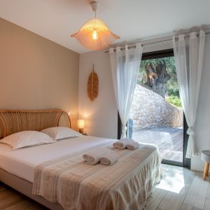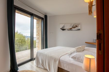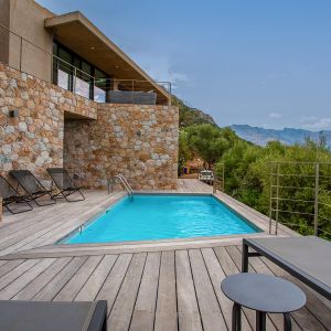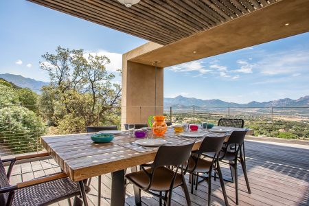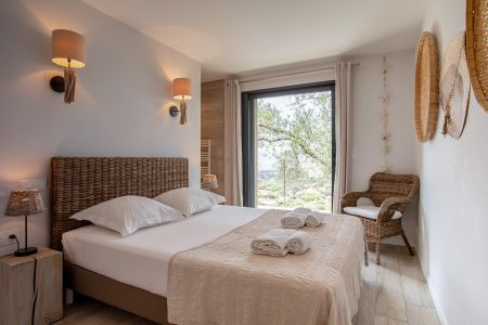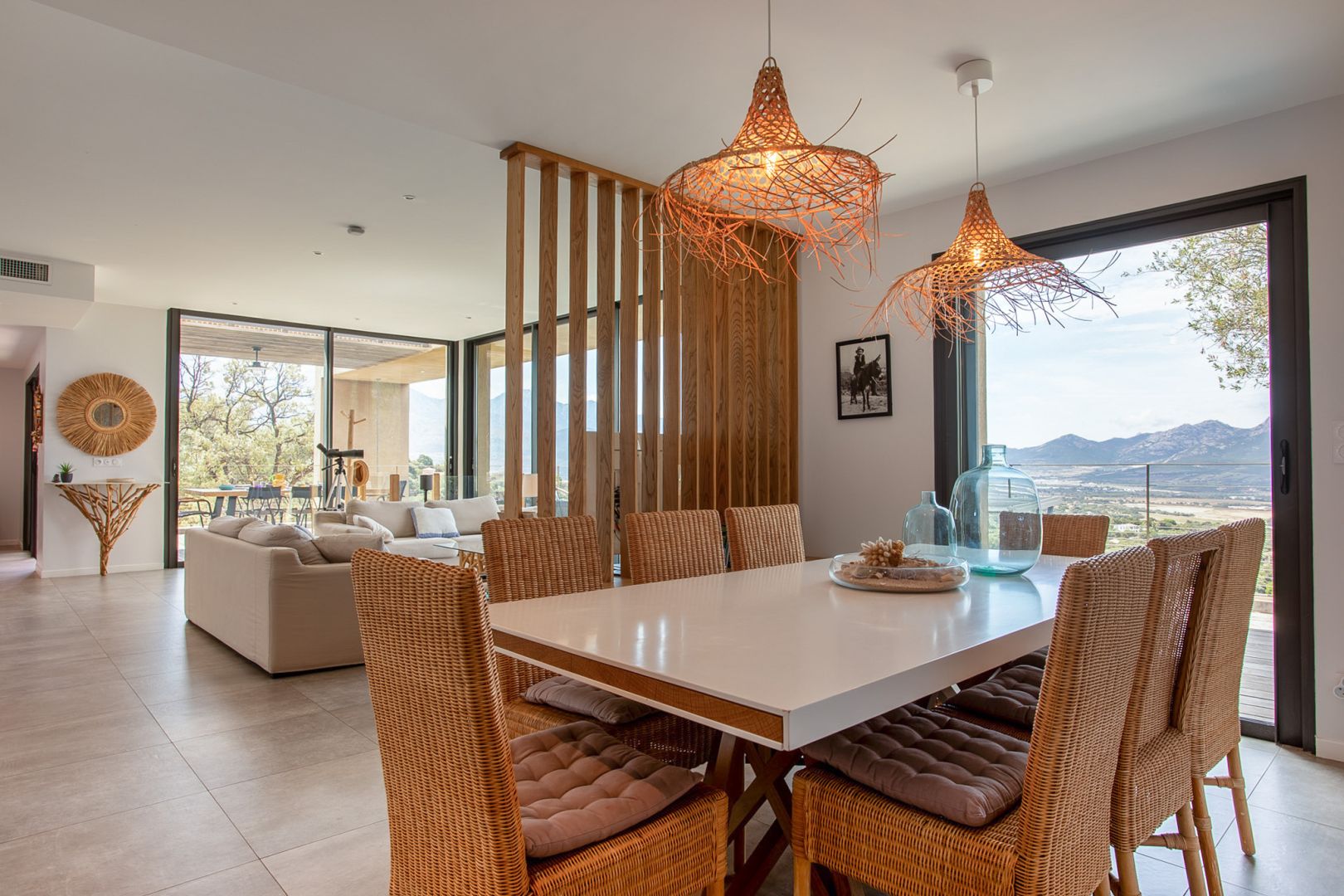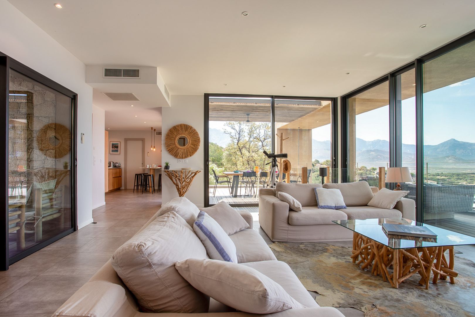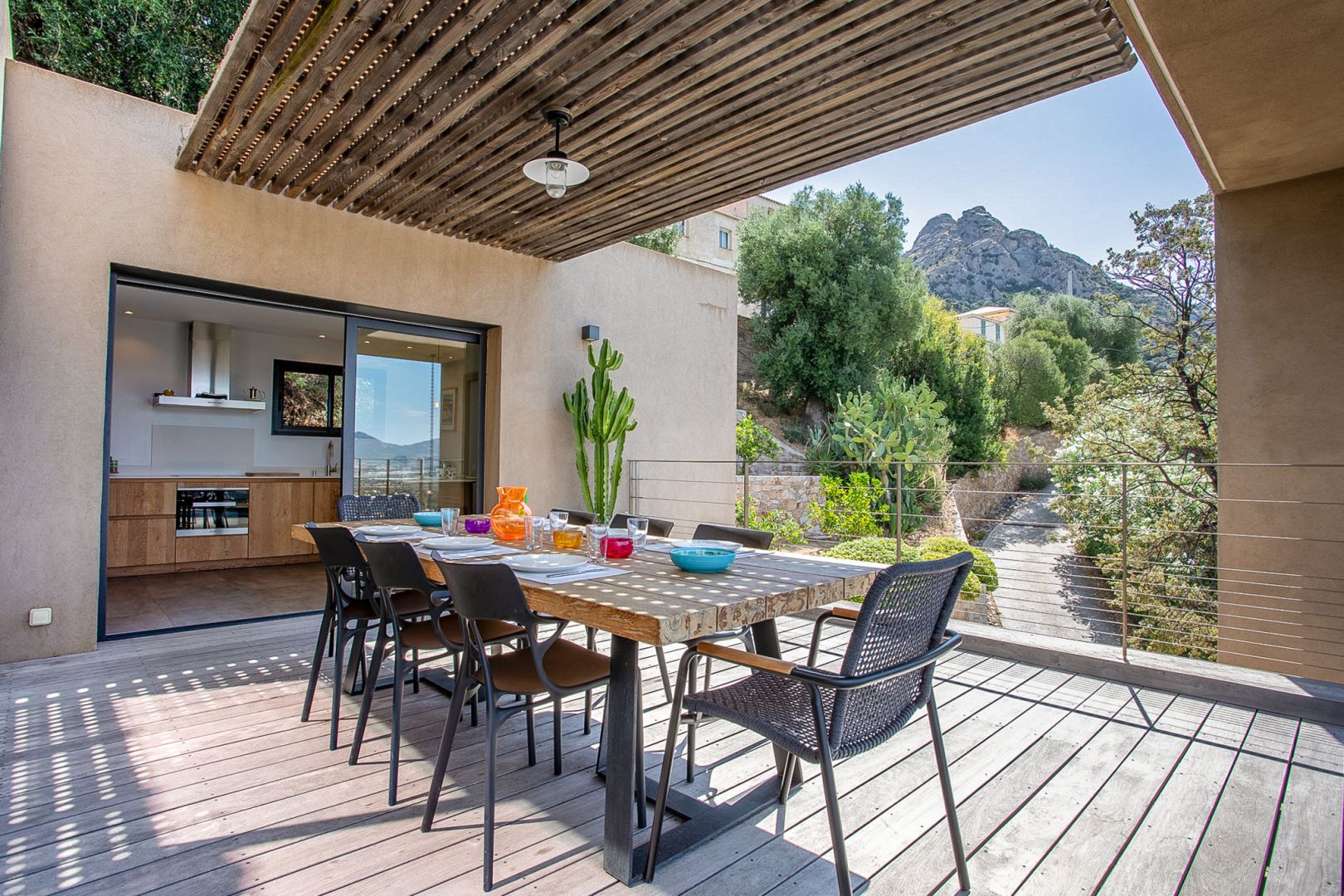 À Lumio villa contemporaine pour 8 personnes entièrement climatisée avec piscine privée et chauffée, au cœur du village, entre Calvi et Ile Rousse. Véritable villa de vacances, la maison dispose de grandes baies vitrées donnant sur une magnifique terrasse, offrant une vue imprenable sur la baie de Calvi et son coucher de soleil. Entourée d'oliviers centenaires, cette villa moderne au charme corse a su garder un cachet authentique. Accès à la mer en 5 minutes. Parking.