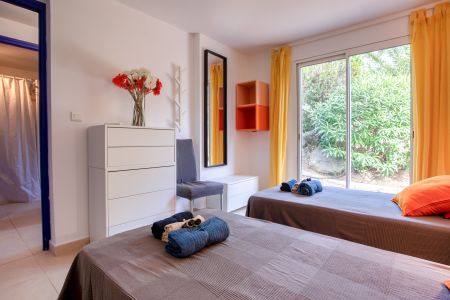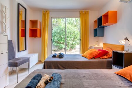 2 chambres donnant sur le jardin dont une avec terasse couverte, 1 salle d'eau + wc