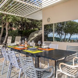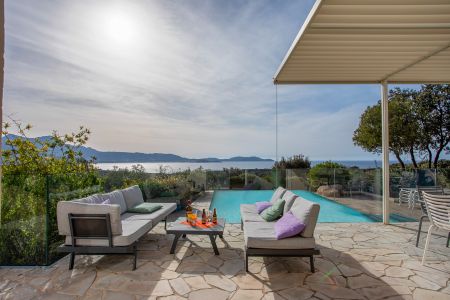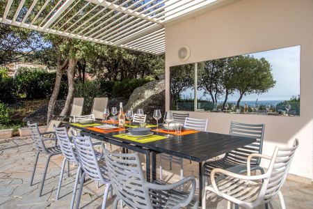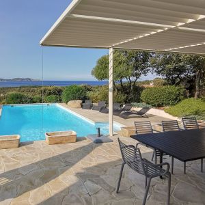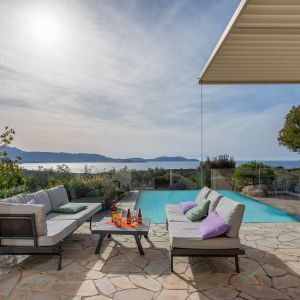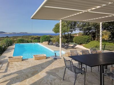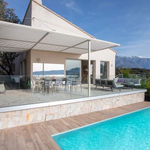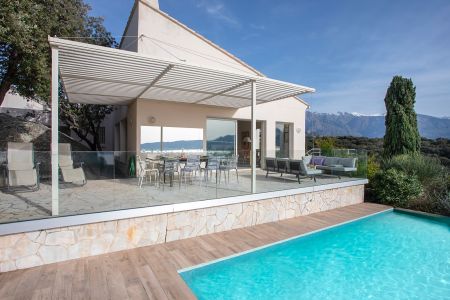 La villa est récente et construite sur un terrain de 1500 m2. Elle dispose d’une grande terrasse donnant sur une piscine sécurisée (9x5) vue sur la baie de Calvi avec pergola et une terasse coté montagne avec vue sur le village de lumio.