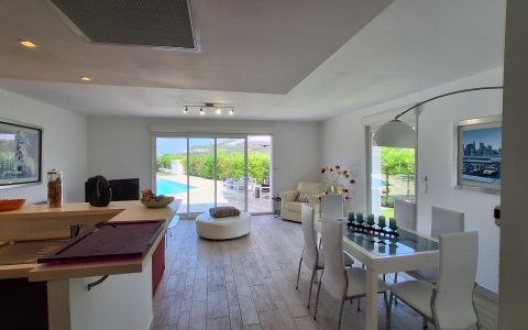 Elle peut acceuillir confortablement jusqu'a 8 personnes et bénéficie de prestations permettant un sejour agréable ( climatisation,wifi, piscine chauffée)